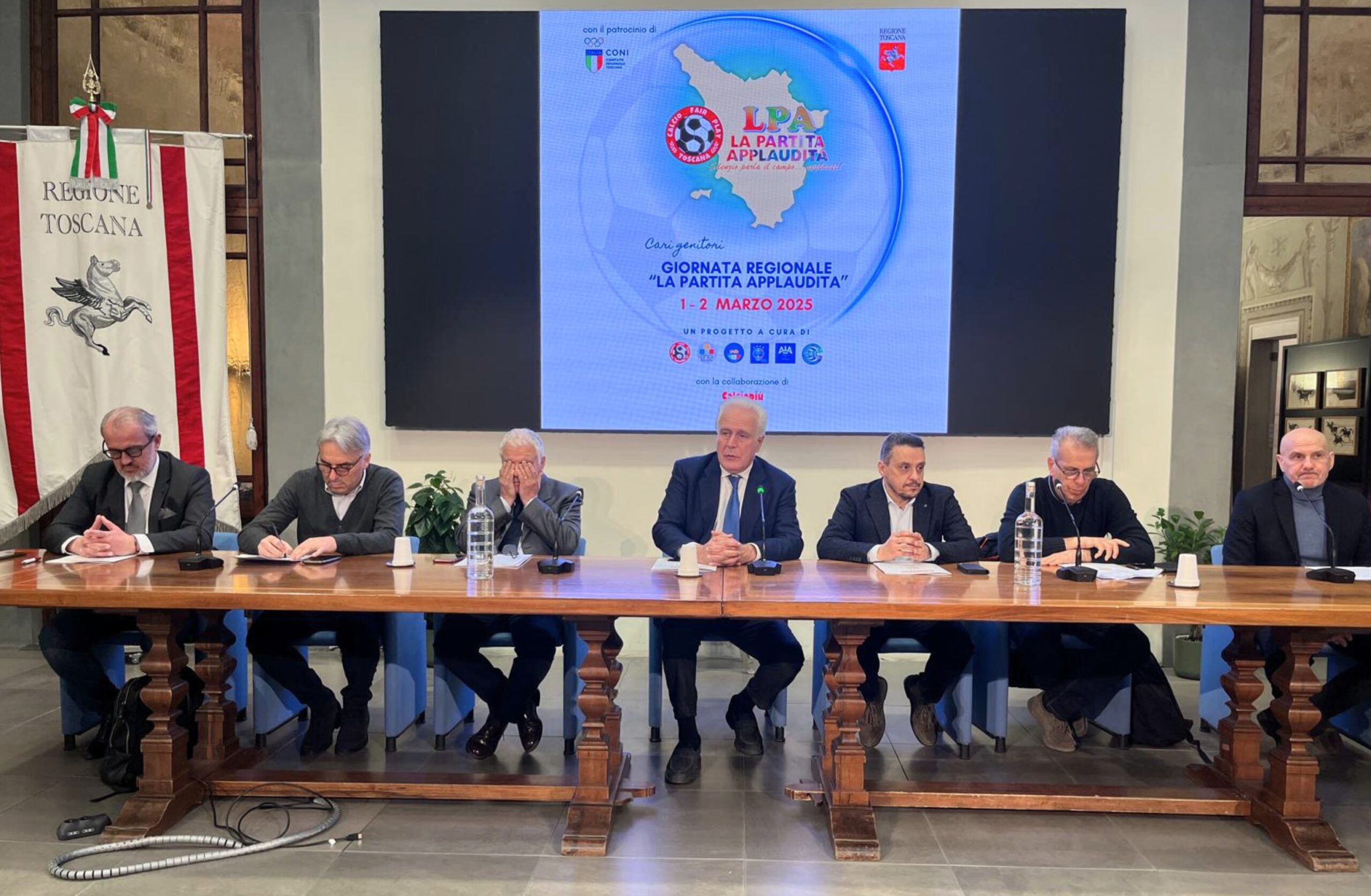 Il presidente della Regione Toscana, Eugenio Giani, ha commentato così la presentazione del progetto “La partita applaudita” che domani e dopodomani, sabato 1° e domenica 2 marzo, vedrà coinvolte oltre duecento squadre, esattamente 222, di tutta la Toscana. Si tratta di 220 squadre Giovanissimi B maschili Under 14 e di due formazioni Giovanissime femminili Under 15, ossia del primo gradino in cui le gare prevedono l’utilizzo di arbitri ed arbitre. Lo scopo è entrare il più possibile in profondità nella mentalità del calcio giovanile toscano.