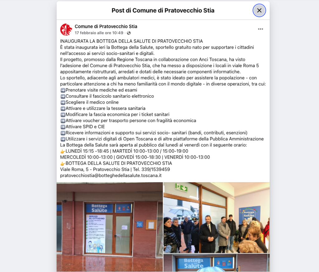 Oltre ai servizi digitali di carattere sanitario elencati nella specifica sezione, le Botteghe della Salute offrono anche i seguenti: